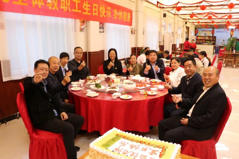 下午6点,教职工们在早已布置好的生日会现场,有说有笑,互送祝福,一张张灿烂的笑脸洋溢着欢乐和幸福。学校院长王新丽、副院长杨文利和杨涛等院级领导亲临生日宴会现场,为教职工们送上生日祝福。