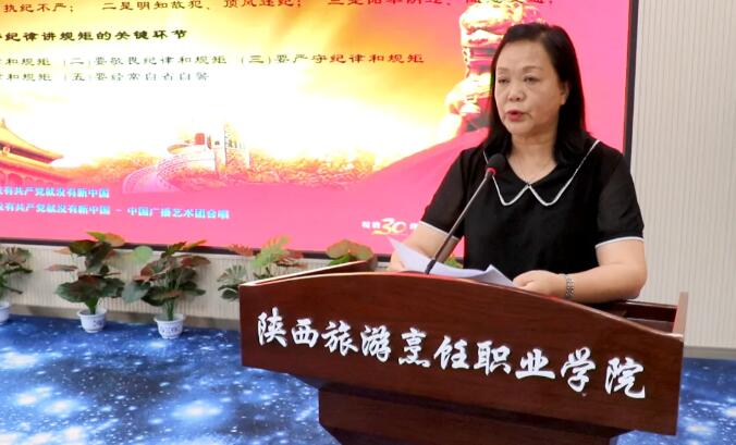 活动第二项,学院院长、党委副书记王新丽带领全院学习“严守规章纪律,争做合格党员”院长王新丽表示:开展此次主题党日活动,是教育、更是敬畏;是教育,更是洗礼;是教育,更是砥砺。党员教师要时时刻刻起到党员先锋模范作用,以史为鉴、开创未来、接续奋斗,勇于开拓创新,砥砺高尚品德,锤炼过硬本领,为推进学院各项工作提质增效贡献力量。