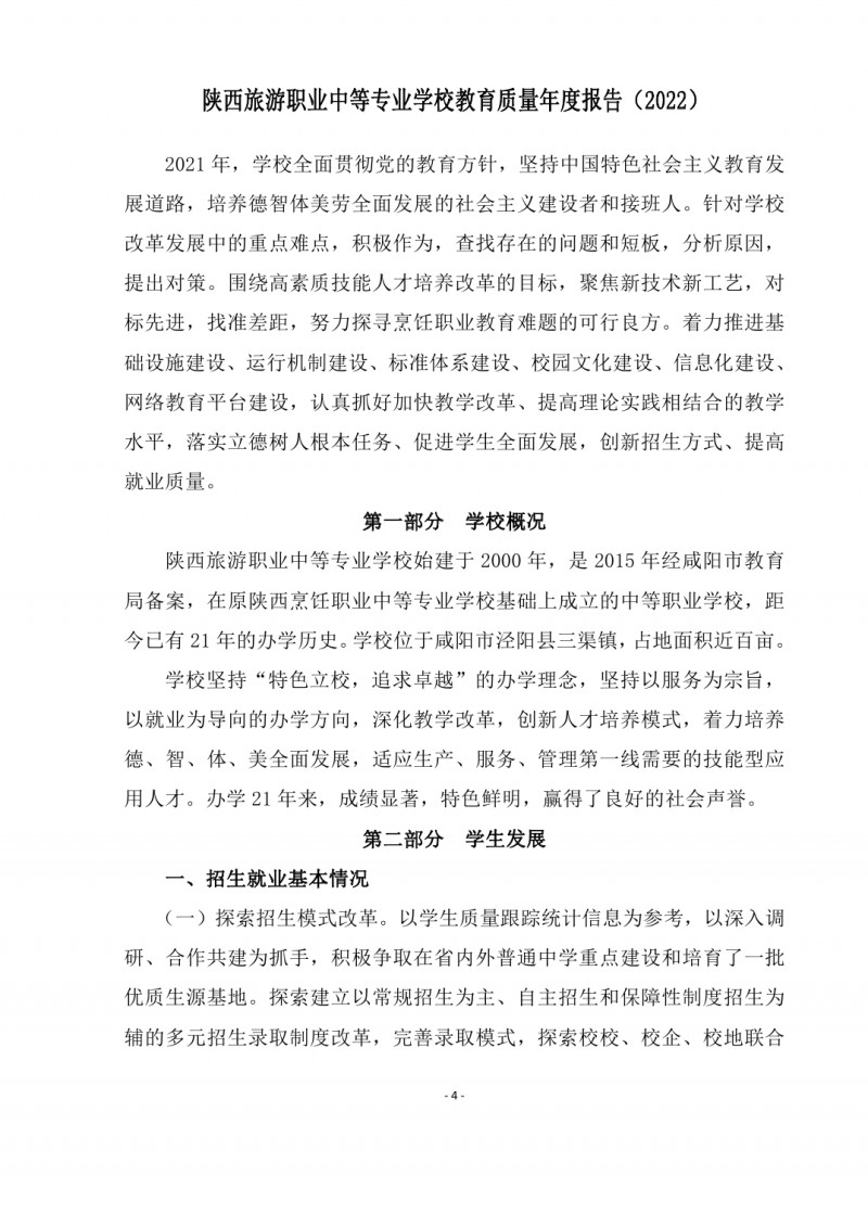 陕西旅游职业中等专业学校2021教育质量年度报告